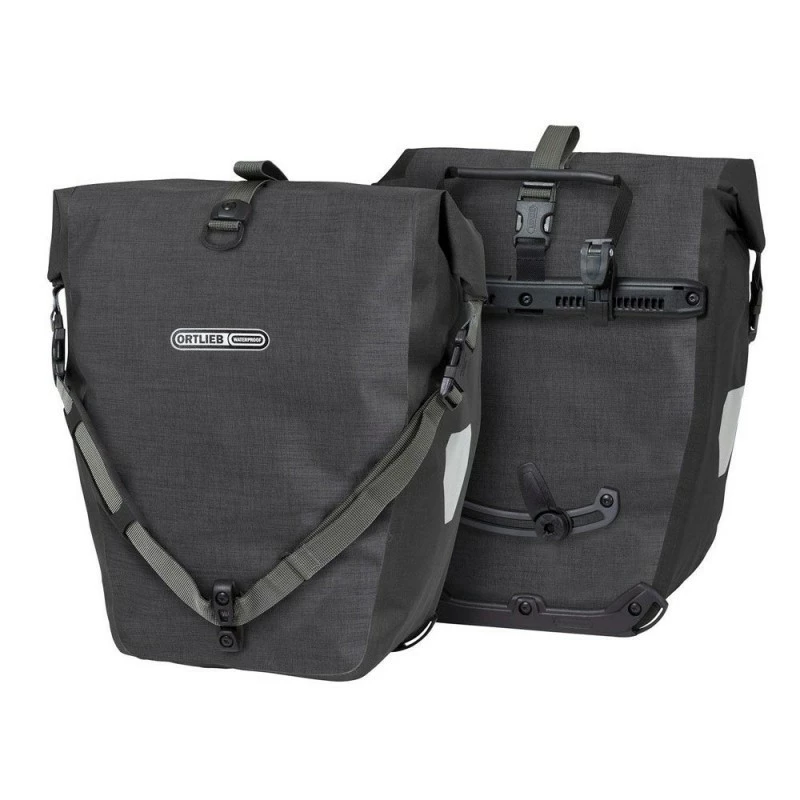 La paire de sacoches Ortlieb Back Roller Plus granit black est parfaite pour la randonnĂ©e Ă vĂ©lo ou vos dĂ©placements urbains. Conçues avec une toile rĂ©sistante sans PVC et 100% Ă©tanches, les sacoches Ortlieb back roller plus sont dotĂ©s d’un système de fixation au porte bagage rapide et efficace qui s’adaptera Ă la très grande majoritĂ© des portes bagages du marchĂ©.