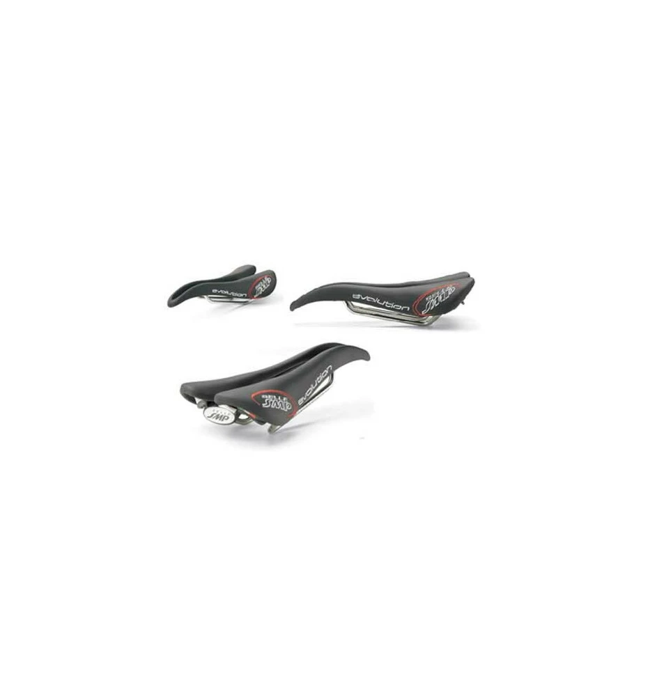 SMP Evolution ergonomique SMP. Le confort des selles SMP est exceptionnel. Comme les selles de la gamme SMP telles que la Gliter ou la Composit, la selle Evolution bénéficie des caractéristiques brevetées comme le bec original du devant de la selle, dessiné pour offrir une base plate pour les efforts assis quand on doit affronter de longues montées et comme aide dans les descentes, en offrant un contrÎle plus grand du vélo au niveau des cuisses.